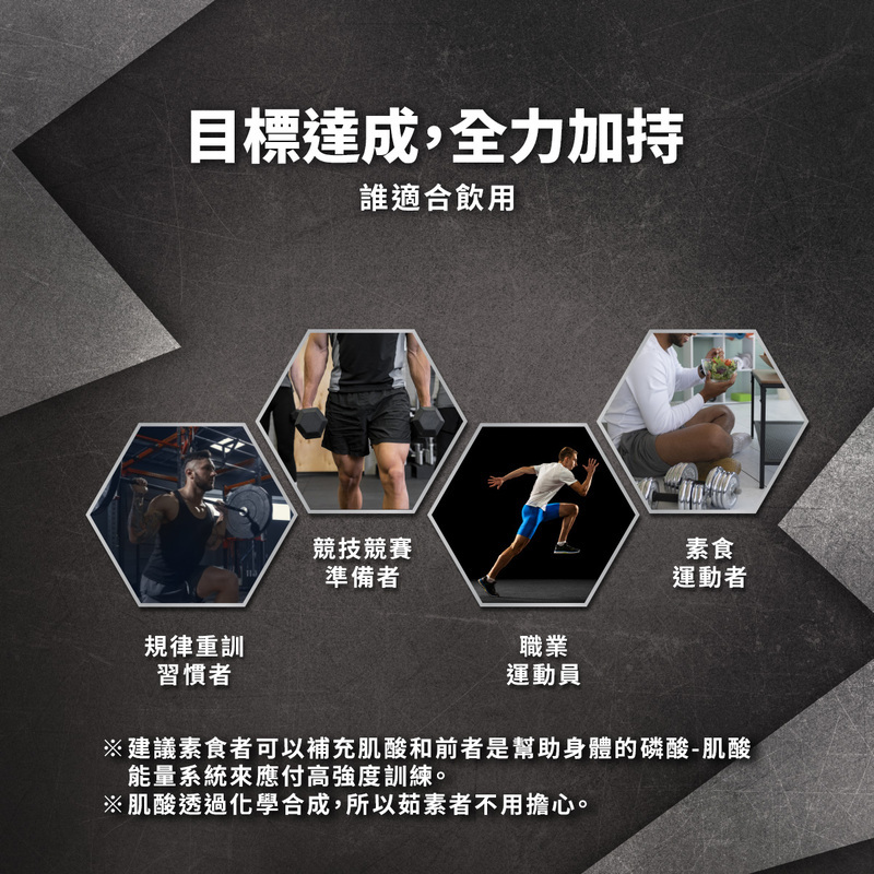 【其他揭露事項】:肌酸不適合一般人食用。如擬食用,需要醫生、營養師或專業人士指導下使用