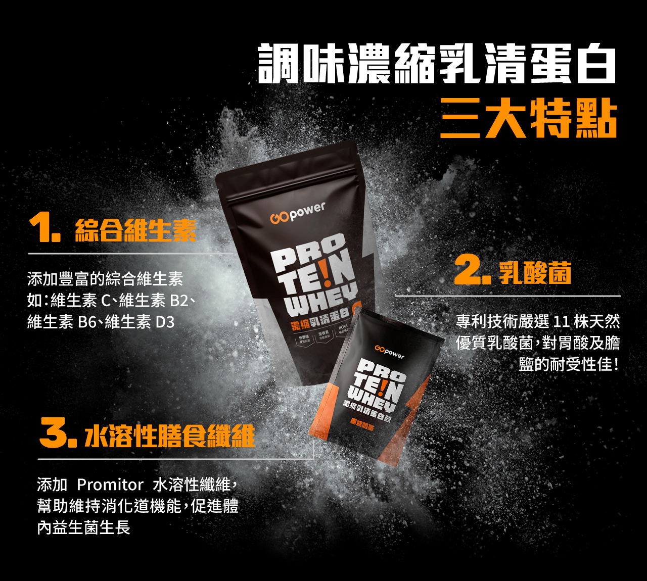 GOpower是臺灣少數使用紐西蘭優質乳清蛋白為基底,針對國人口味所調配的蛋白質營養補充品,具有營養吸收快、奶味較香濃、容易溶解等特色,並且採用ISO及HACCP認證廠商進行生產及包裝,安全有保障。