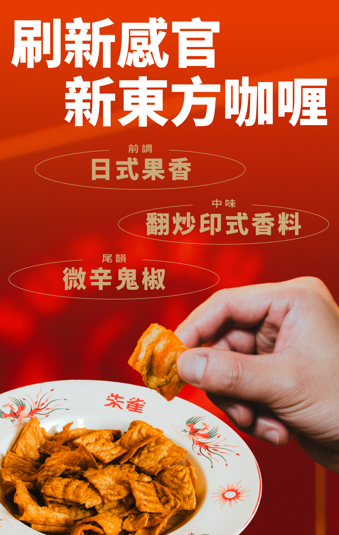 拆解日印咖哩元素,朱雀以獨門秘製配方,將辛、甘、香料與水果比例重新調整,打造出既熟悉又新奇的「新東方咖哩」。